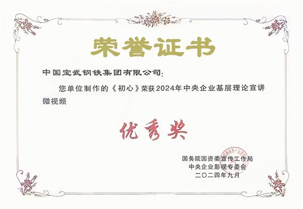 9月27日,2024年中央企業社會主義核心價值觀主題微電影(微視頻)展映發布儀式在北京舉行,由中國寶武選送、中鋼集團指導、中鋼洛耐拍攝的微視頻《初心》榮獲2024年中央企業基層理論宣講微視頻優秀獎,這是該視頻繼榮獲“寶武好故事”后的又一殊榮,目前該視頻已經入圍第七屆中央企業優秀故事創作展示活動。