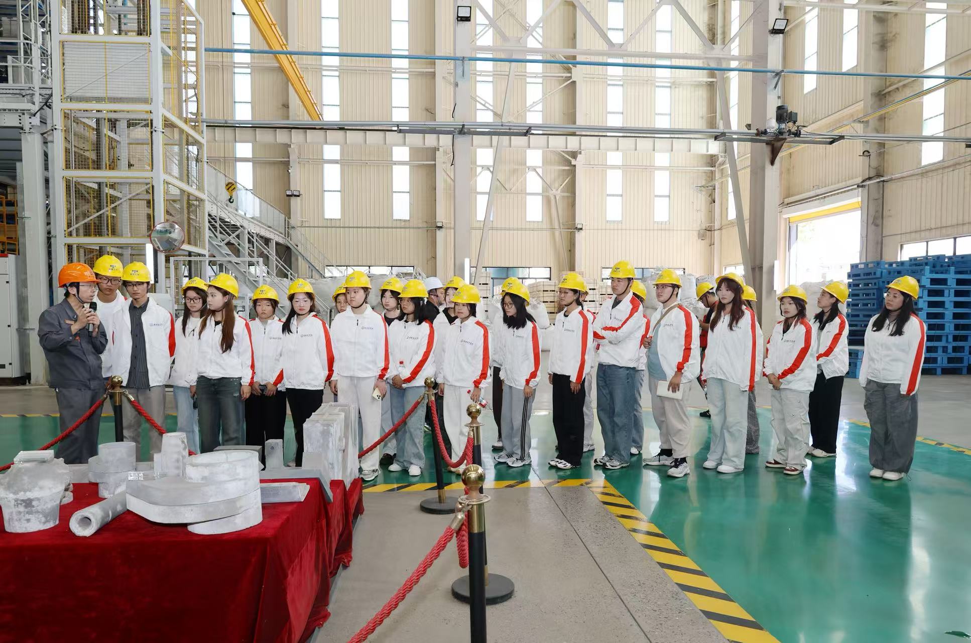 中鋼洛耐廠區負責人帶領師生走進生產現場,圍繞企業核心產品、生產工藝、技術創新成果及在國家重點工程中的應用場景展開詳細講解,生動展現了中鋼洛耐在支撐我國高端裝備制造、冶金等關鍵領域發展中的“大國重器”擔當,讓師生直觀感受到“洛陽智造”的硬核實力。
